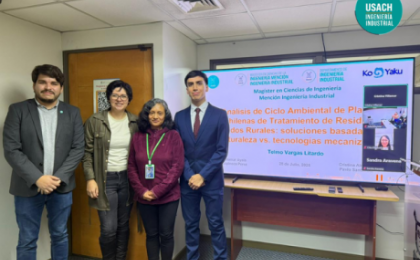 El pasado 28 de julio de 2025, el estudiante Telmo Vargas Litardo defendió su trabajo de título “Análisis de Ciclo Ambiental de Plantas Chilenas de Tratamiento de Residuos Líquidos Rurales: soluciones basadas en la naturaleza versus tecnologías mecanizadas”, para optar al título de Ingeniero Civil Industrial y al grado de Magíster en Ciencias de la Ingeniería mención Ingeniería Industrial.
